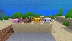 They are hostile towards every underwater mob minecraft axolotl wiki. Axolotls need water to survive but they can survive on dry land for a few minutes.